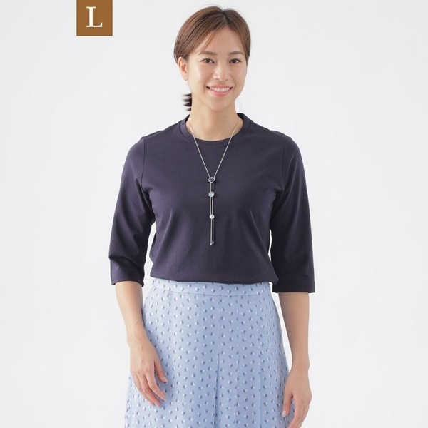 【L】【ウォッシャブル】コンパクトコットンポンチ7分袖ドレスTシャツ