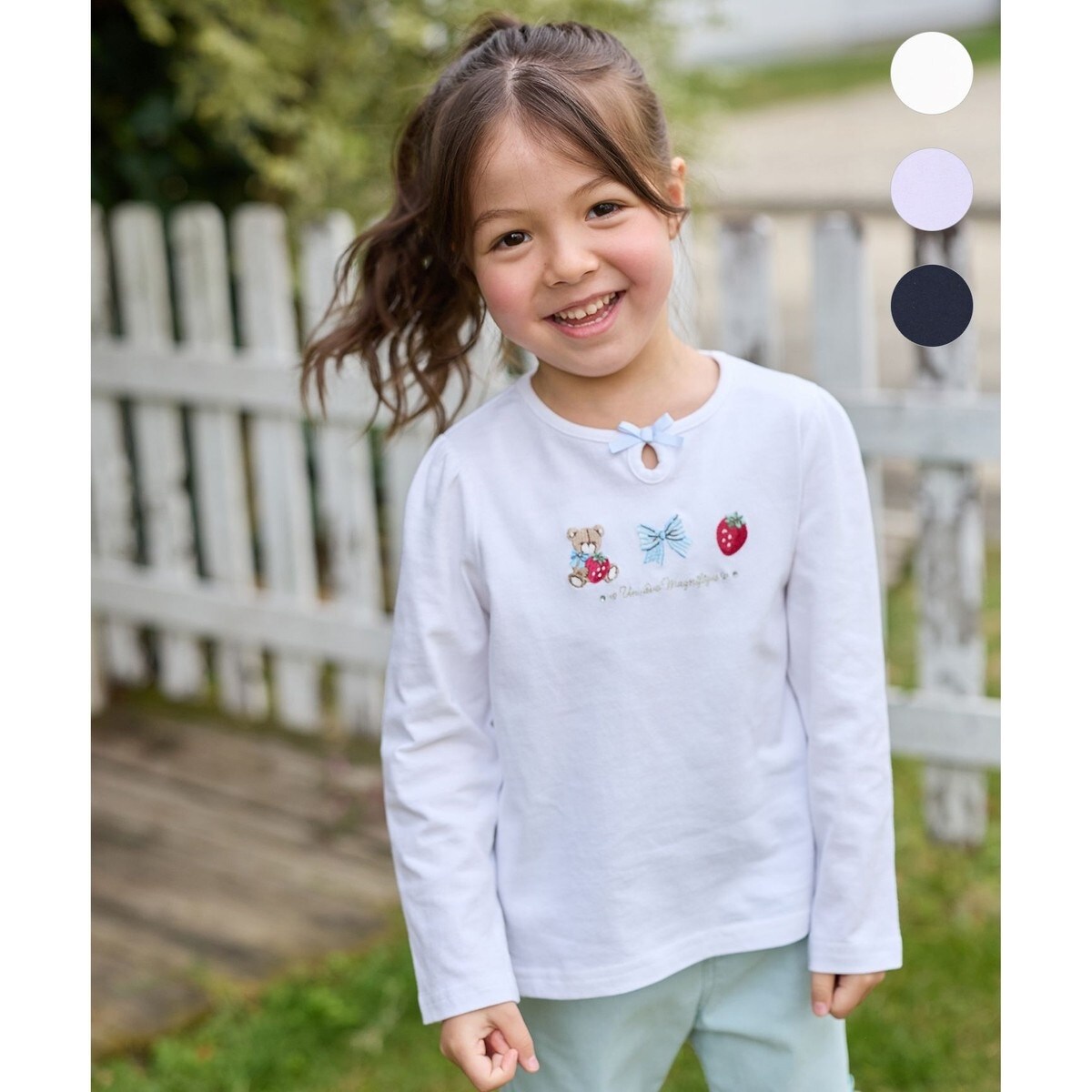キッズ/長袖/刺繍/クマ/イチゴ/リボン/通園/通学/人気/デイリー/女の子/ガール/サスティナブル