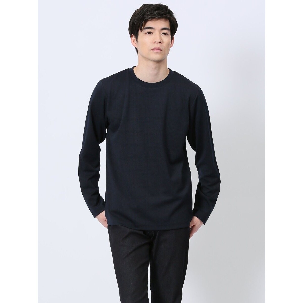 ふくれチェックジャガード クルーネック長袖Tシャツ
