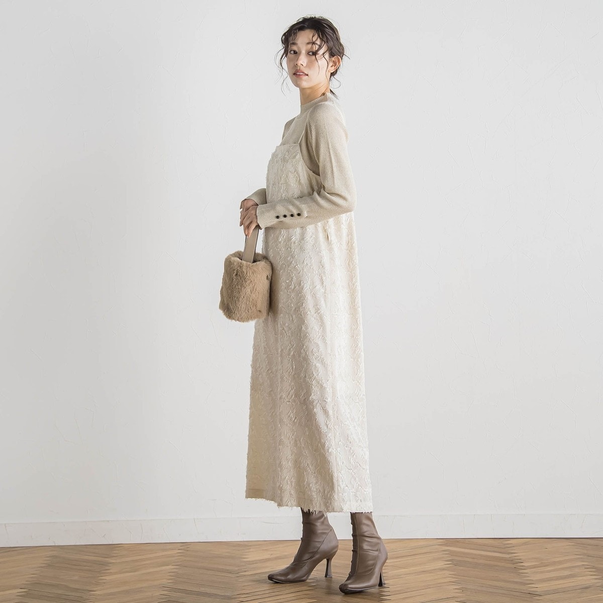 ヘアリーなカットジャガードが表情感たっぷりのキャミワンピース。