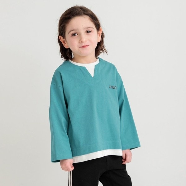 重ね着風デザイン長袖トップス