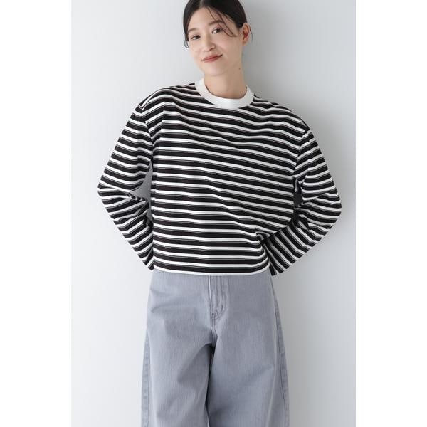 ボックスシルエット クロップ丈ボーダーTシャツ