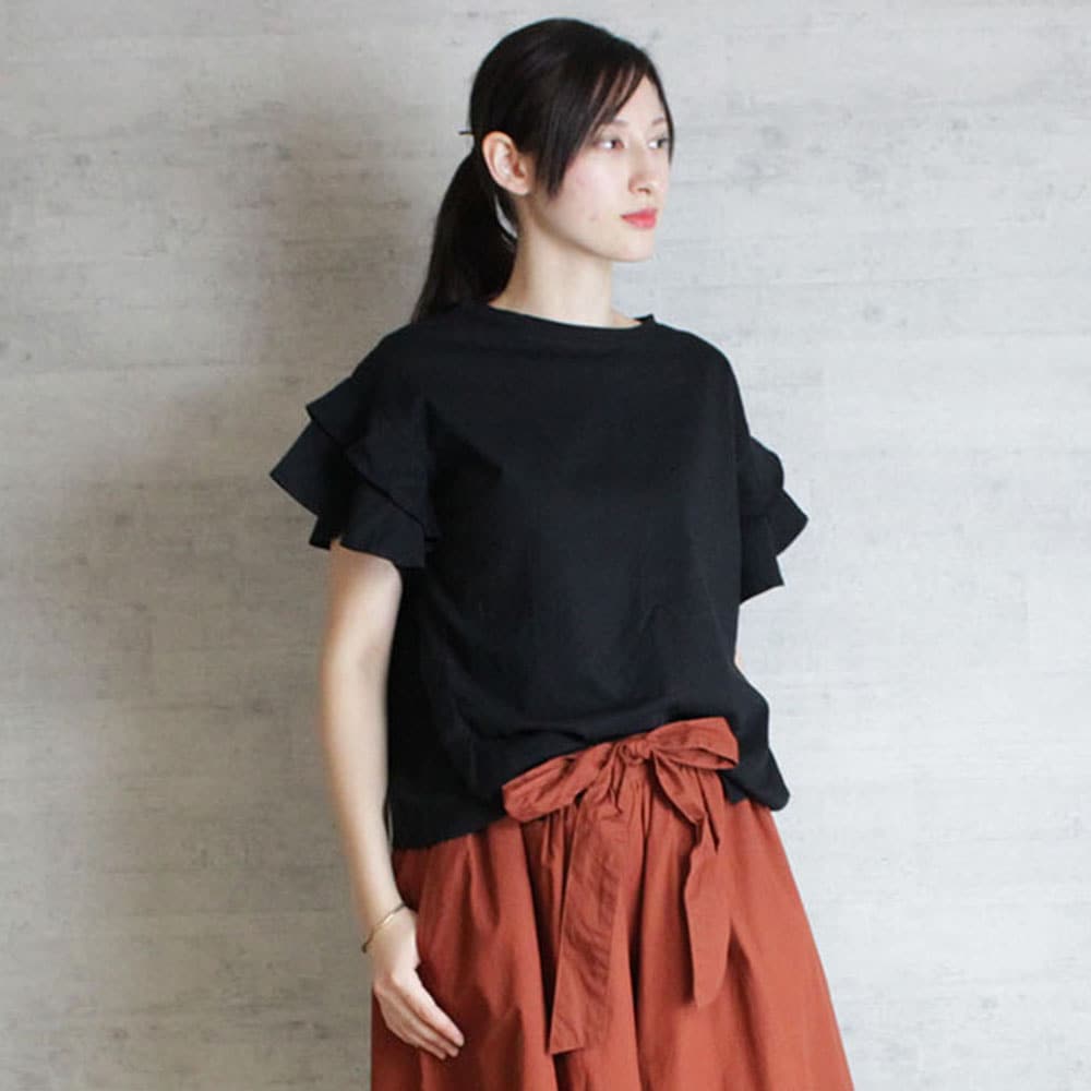 袖ダブルフリルTシャツ