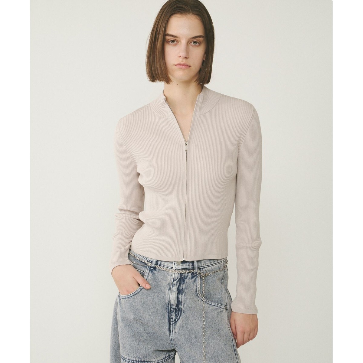 フロントジップにハイネック、そしてボディに心地良くフィットするタイトなシルエットで、すっきりスマートな装いが叶う大人なデザインです。どちらを前にしても着ていただける2WAYタイプ。