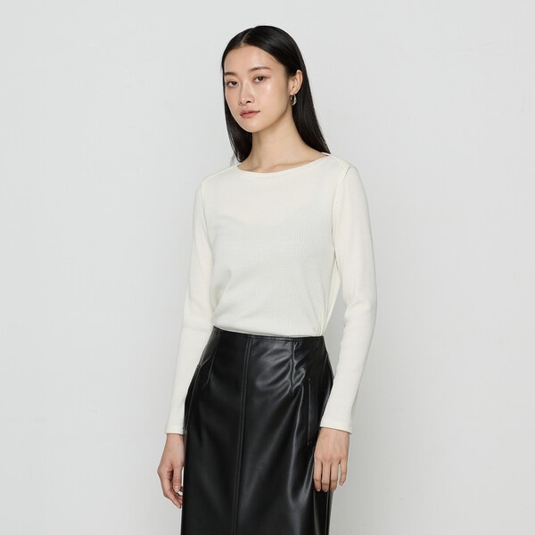 暖かい着心地はそのままにハイネックが苦手な方にぴったりのすっきりとした襟ぐりの形はニットやシャツ、ジレ等のインナーにもおすすめです。