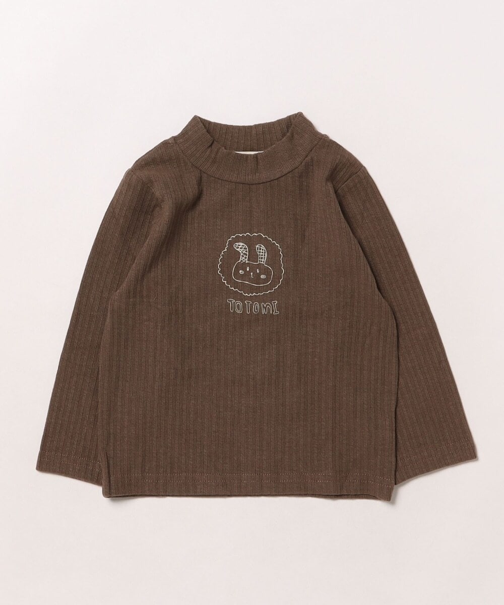 うさぎのプリントがかわいいハイネックトップス。どんなコーディネートにも合わせやすいです。