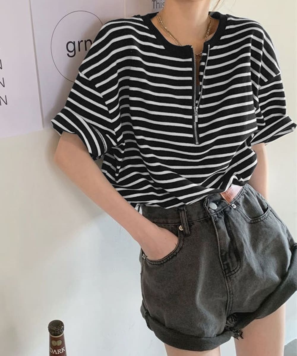 胸元のハーフジップがアクセントになり、開閉によりさまざまな着こなしが楽しめます。