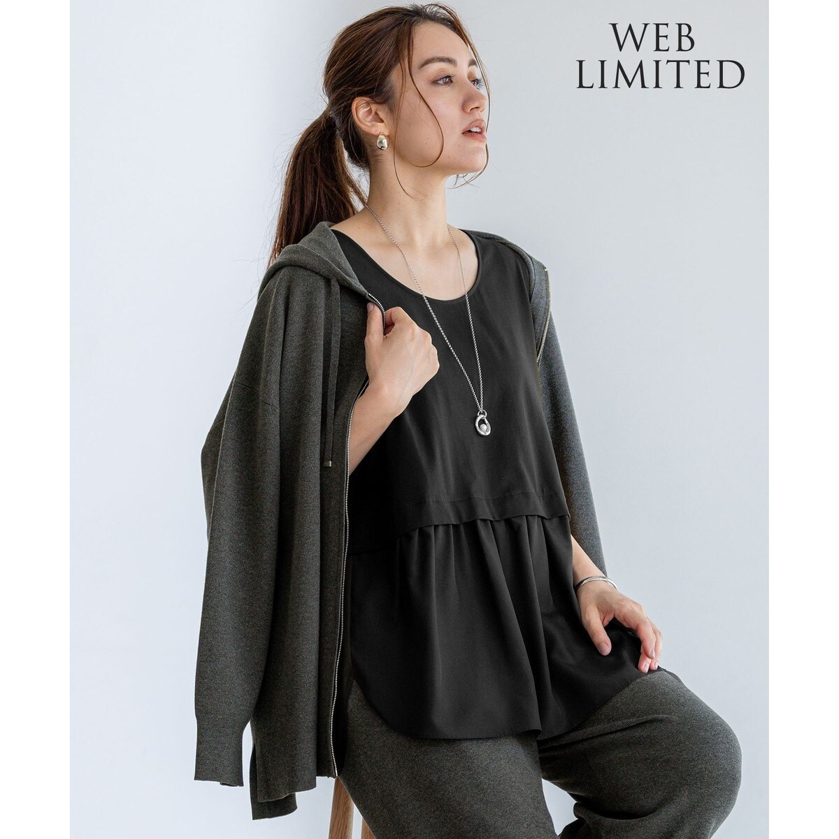 ウエストからしなやかなローン生地で切り替えたコンビデザインのタンクトップ。ウエストギャザーを入れることで、大きいサイズの方でもレイヤードしたときに体のラインに張りつかない美しいシルエットに。【大きいサイズ限定】ヴィスコースストレッチ Vネック ニットとのレイヤードが楽しめるよう襟ぐりを設計しました。ノースリーブでレイヤードしても袖のゴワつきがなく、腕が動かしやすいのもうれしいポイント。他にもミドルゲージ、バルキーニットなどの丈の短めなニットTOPSなどと合わせるのもおすすめです。カラーはベーシックであらゆるアイテムと好相性なホワイト(#001)と、新色のブラック(#005)の2色展開です。