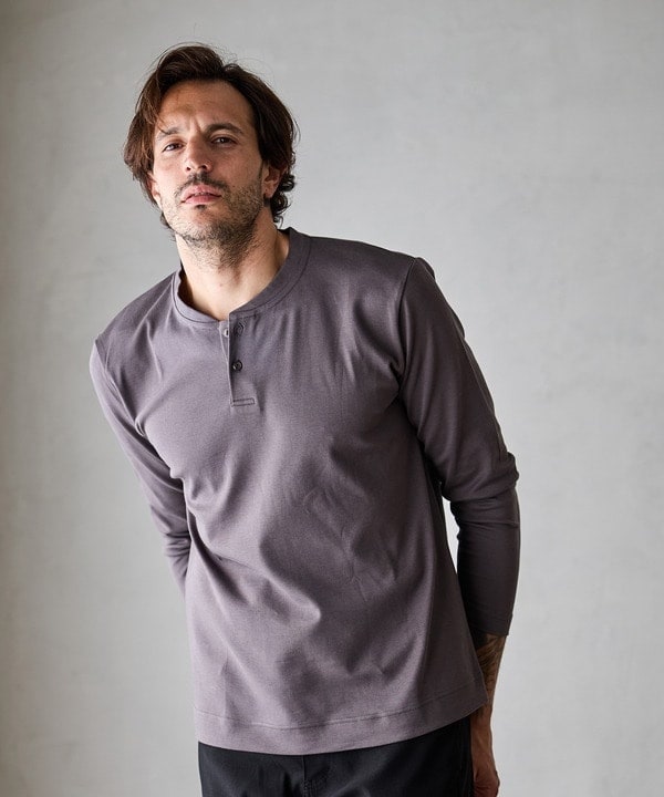 ジャケットとの相性も良いヘンリーネックデザイン