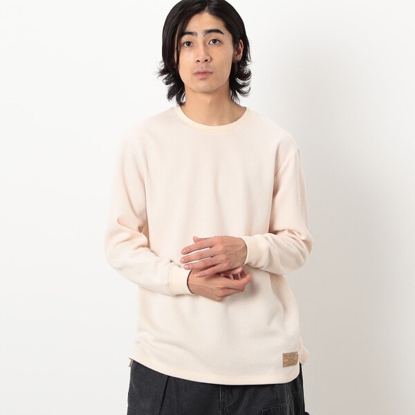 程よい肉厚感のワッフルに起毛を施して生地自体をしっかりさせているので、着用したときのシルエットがキレイに出るのがポイントです。