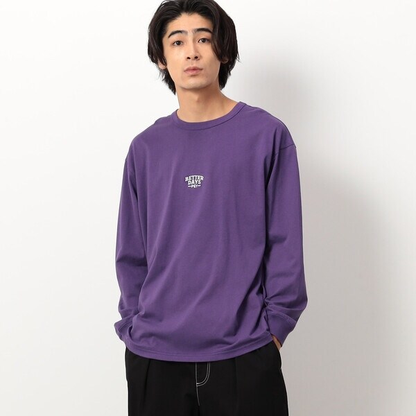 胸中央にメッセージ刺繍、背面にメッセージプリントを入れたワイドシルエットの長袖Tシャツです。