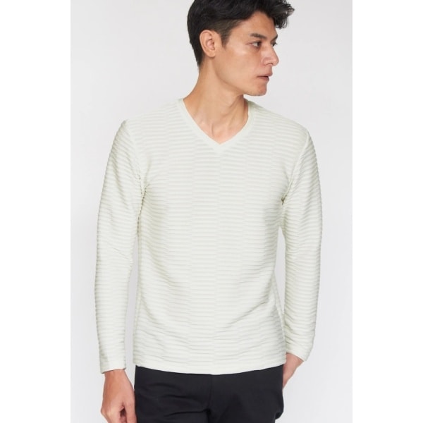 インポートマテリアルを使用したVネック長袖カットソー。