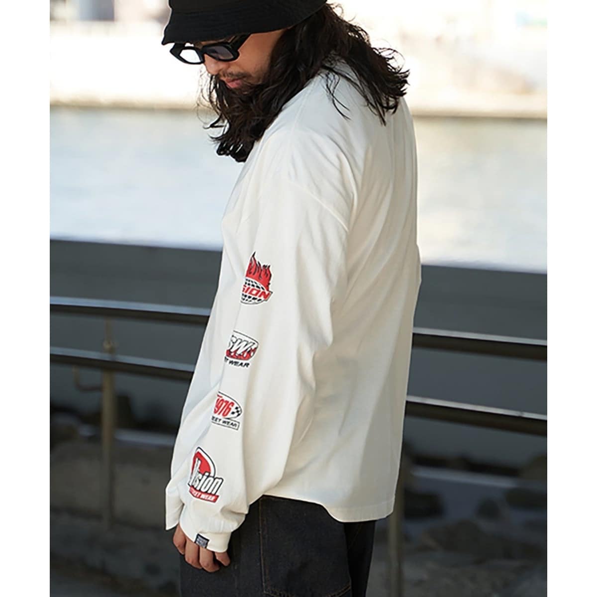 VISION STREET WEAR のロゴ袖プリントデザインのロンTシャツ。