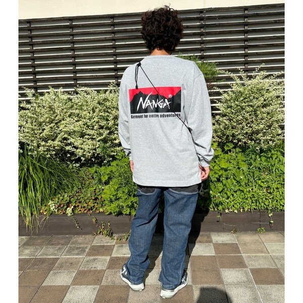 サイクル素材を使用してバックプリントに大きくプリントしたNANGA別注ロングスリーブTシャツ。
