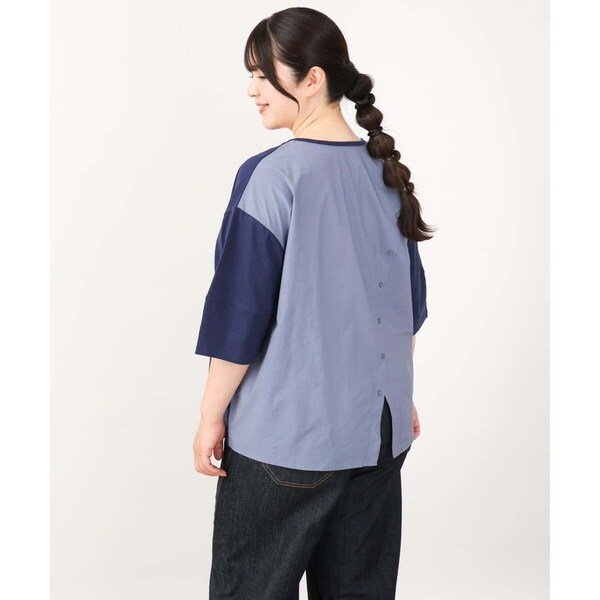 【大きいサイズ/LAVEANGE×eur3】シャーリング異素材ドッキングプルオーバー
