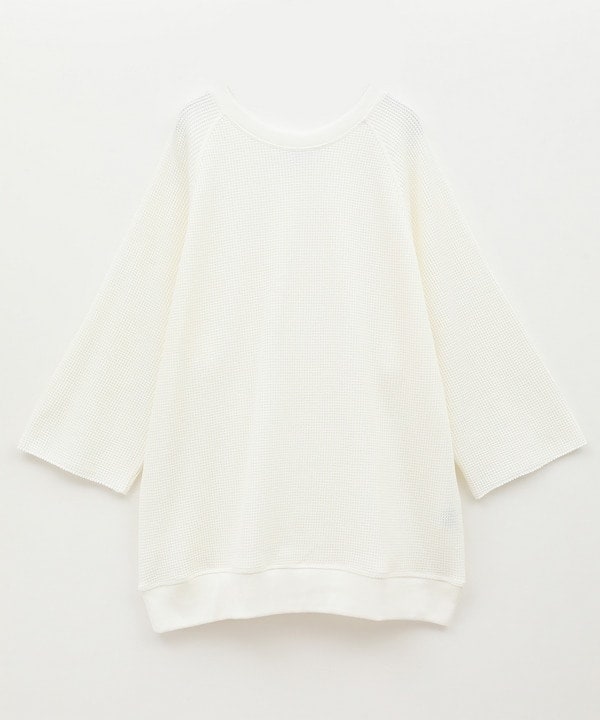 オープンエンド精紡交撚機を用いた特別な糸を使用し、少しシャリ感のあるさらっとした着心地を実現するワッフル素材として仕立てられています。