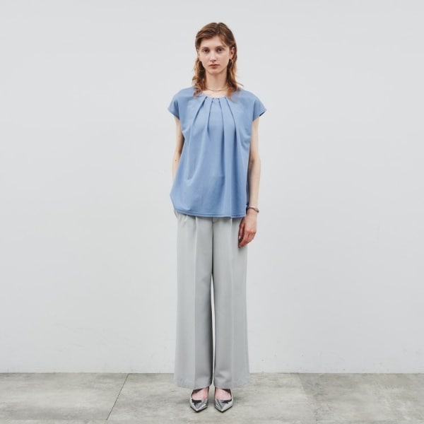 前身頃にはタックデザインを施し、立体感と上品な表情をプラスしました。