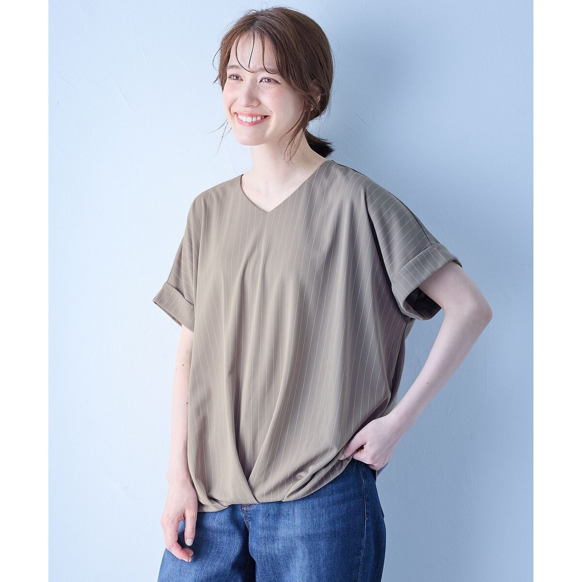 デザイン・前身頃にタックをとり腰回りをさりげなくカバーできるTシャツ