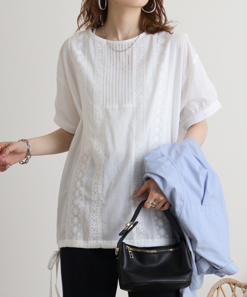 裾しぼりレース切替プルオーバー【サイズ】[Mサイズ]身幅:64cm、肩幅:52cm、総丈:65cm、そで丈:15.5cm