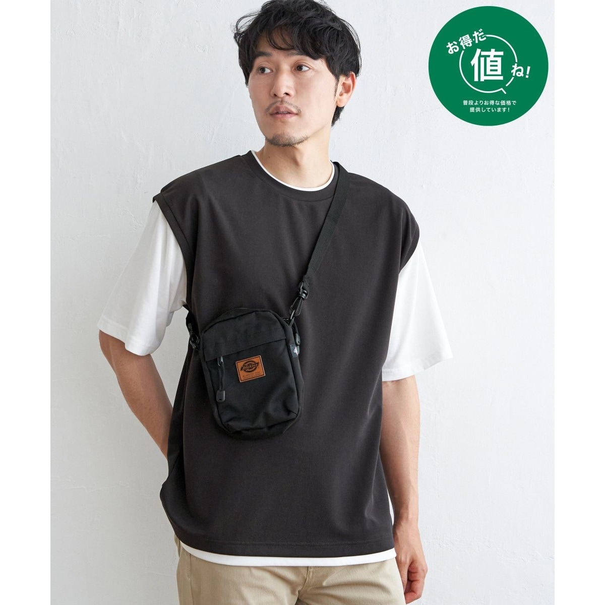 人気の一枚でコーデが完成する便利なフェイクベストTです。