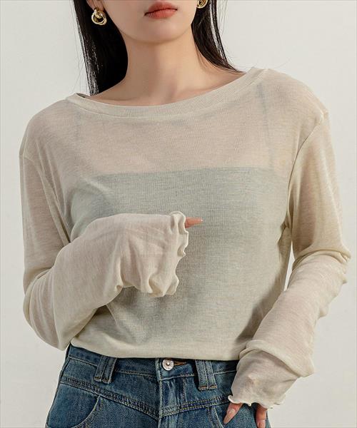 シアートップス カットソー レディース インナー透け感 春 夏 秋SLUB176
