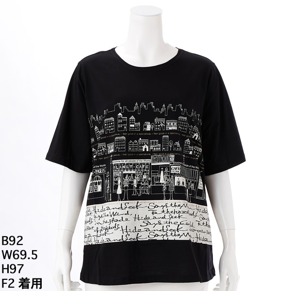 a2208【大きめサイズ】総柄 プリントTシャツ 半袖
