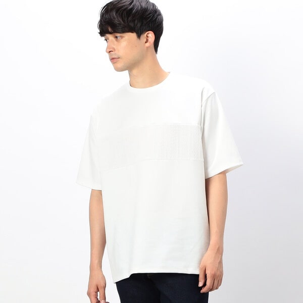 【コムサイズム】ケーブル柄ジャカード コンビデザインTシャツ