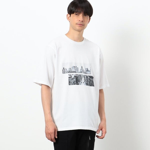 新品訳有り COMME CA ISM コムサイズム 接触冷感 Feel-Cool フォトTシャツ 「CITY SKY」 01ホワイト Lサイズ 60TK54 定価3,600円