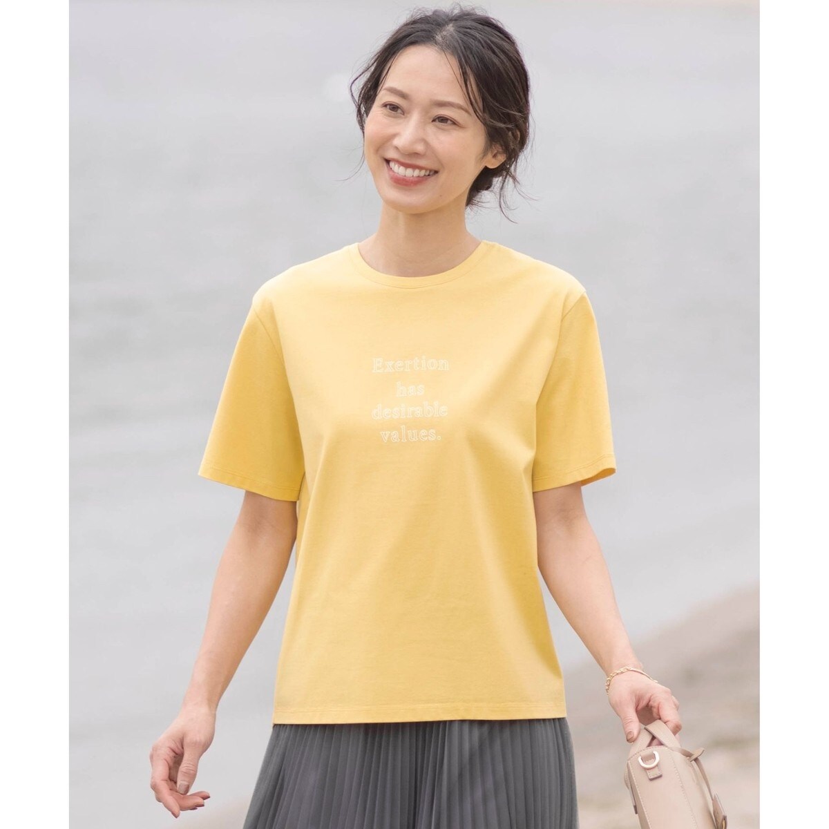 存在感のあるロゴが目を惹く、きれいな表面感のTシャツ