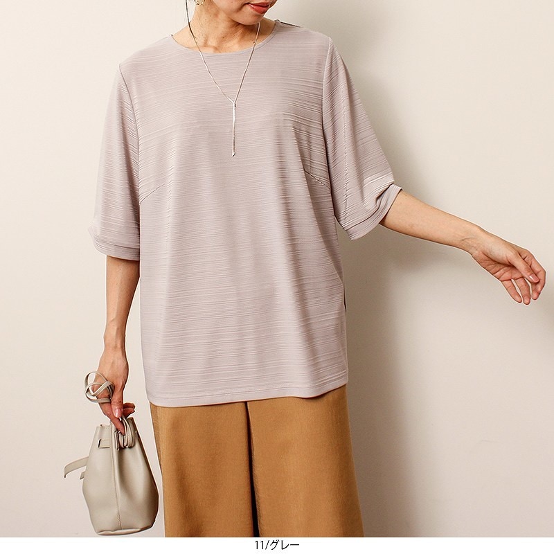 新品値引 3Lグレー*ランダムテレコフレアスリーブメロウカットソー 大きいサイズ