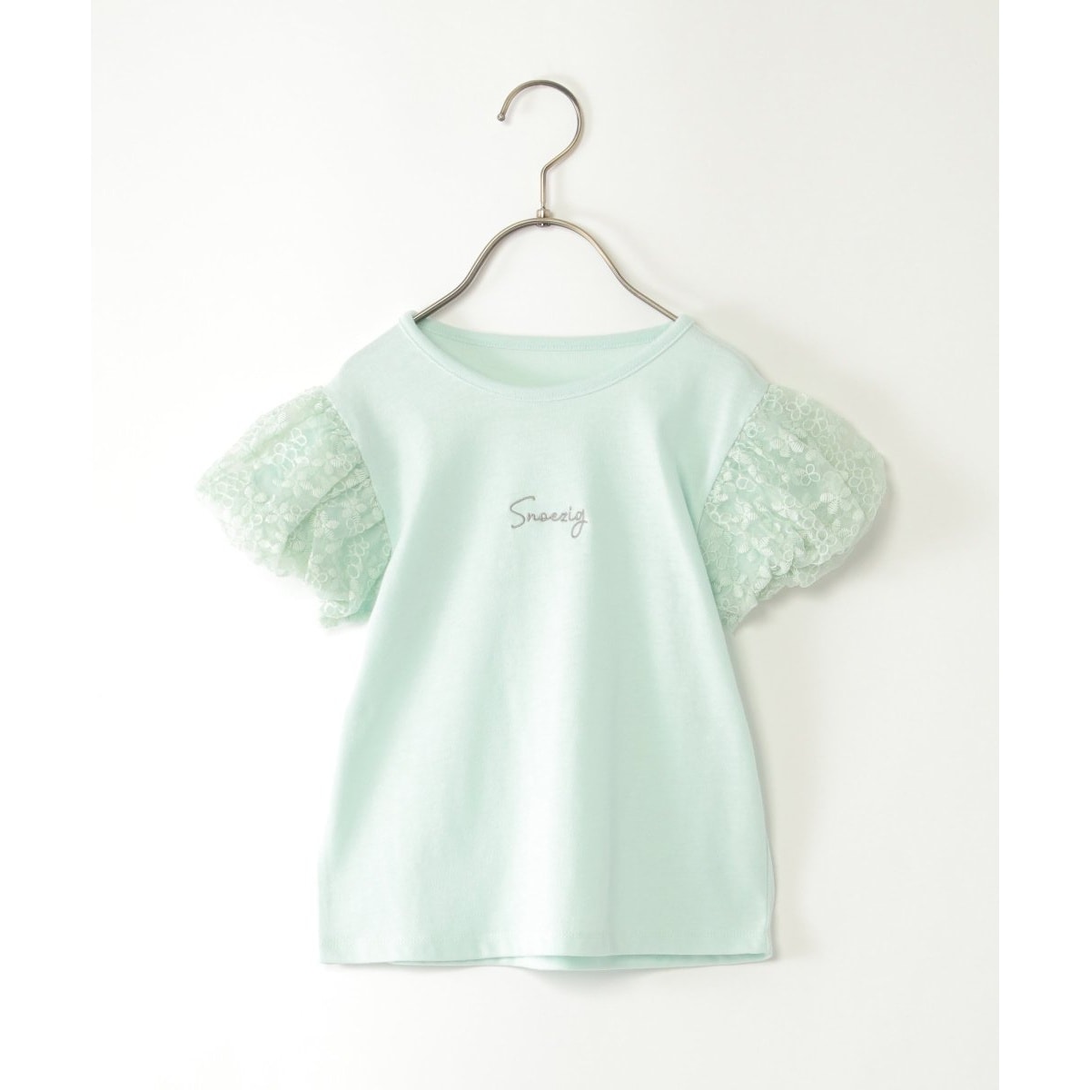 袖に花柄チュールレースを重ねたデザイン。