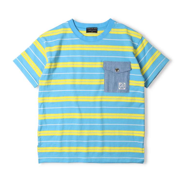 きれいなカラーのボーダー半袖Tシャツ。カラーボーダー部分は凹凸感のあるラーベン編みいなっています。胸のダンガリーポケットがポイントです。安心の日本製でギフトやプレゼントにもオススメ!同じデザインのベビー、トドラーサイズはV32826になります。【アイテム】トップス カジュアル お洒落 オシャレ かっこいい かわいい 可愛い 普段着 デイリーウェア お出かけ着 お外着 お外遊び着 子ども服 こども服 男児 男の子 ボーイズ キッズ ジュニアサイズ スクールサイズ 中学校 中学生 高校生 小学校 通園 通学 小学生 2024年春夏物新作 丸高衣料 半袖 ロゴ ホワイト 白色 オレンジ ターコイズブルー 水色 青色 イエロー 黄色 ダディオダディ