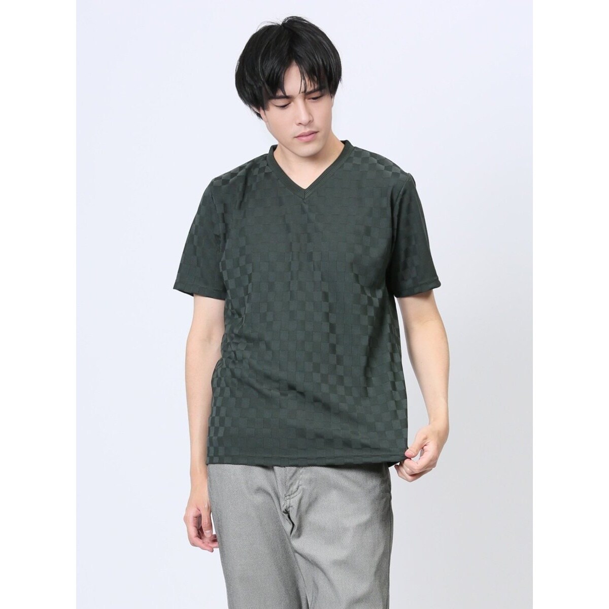 リンクス市松ジャガード Vネック半袖Tシャツ