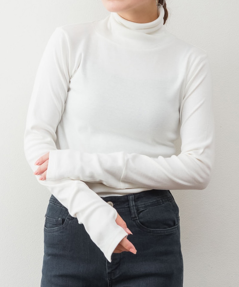 ハイネック指穴カットソー