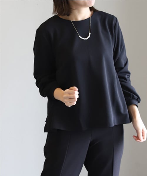・一見シンプルなブラウス見えするプルオーバーですがバックがモードデザインになっています。