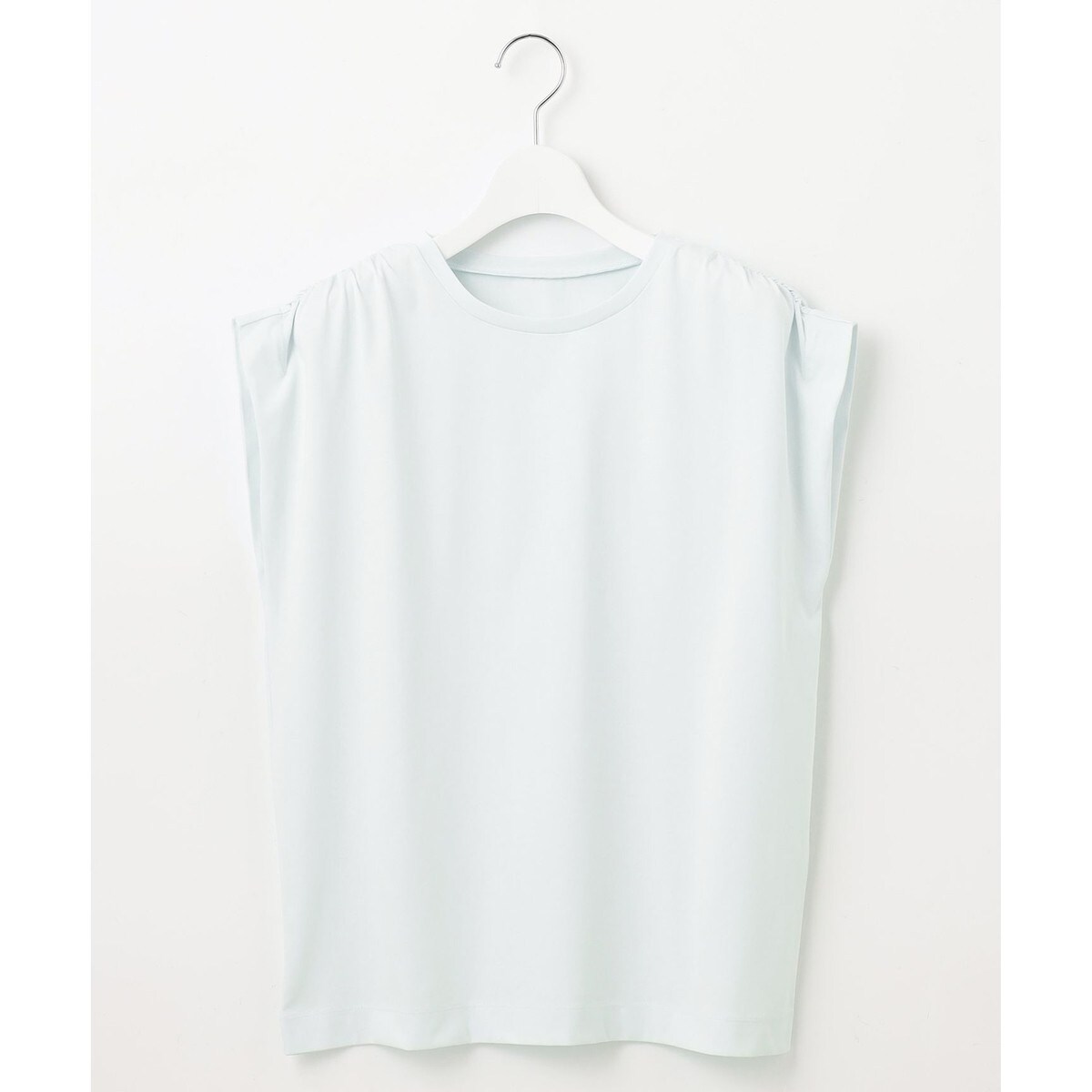 肩のギャザーが女性らしいデザインカットソー■デザインシンプルなスリーブレスのカットソーです。肩のギャザーが女性らしい柔らかさを表現しながら、肩周りや二の腕を程よくカバーしてくれるデザインです。後ろの首元に付けたさり気ないゴールドプレートもアクセントに。1枚で着るのはもちろん、ジャケットやカーディガンなどのインナーにも合わせやすいシンプルさで、着回しやすいデザインTシャツです。フレアスカートに合わせてインしていただく女性らしいコーディネートがおすすめです。■素材表を綿、裏をポリエステルで編むことにより表側は綿の風合いを残しながら、裏側は清涼感のある素材です。表側の綿糸には適度な肉感もあるので、透けにくくボディラインも拾いにくくなっています。