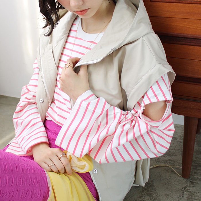 ボーダー&カットアウトがトレンドライクなカットソー。