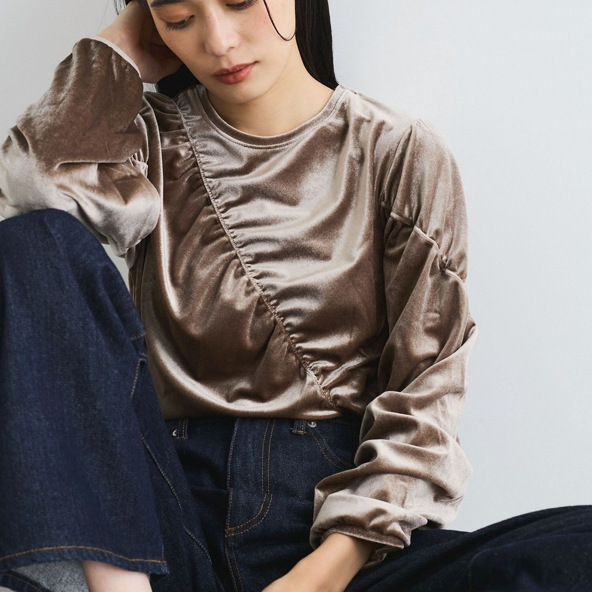 新品 ベロア シャーリング トップス