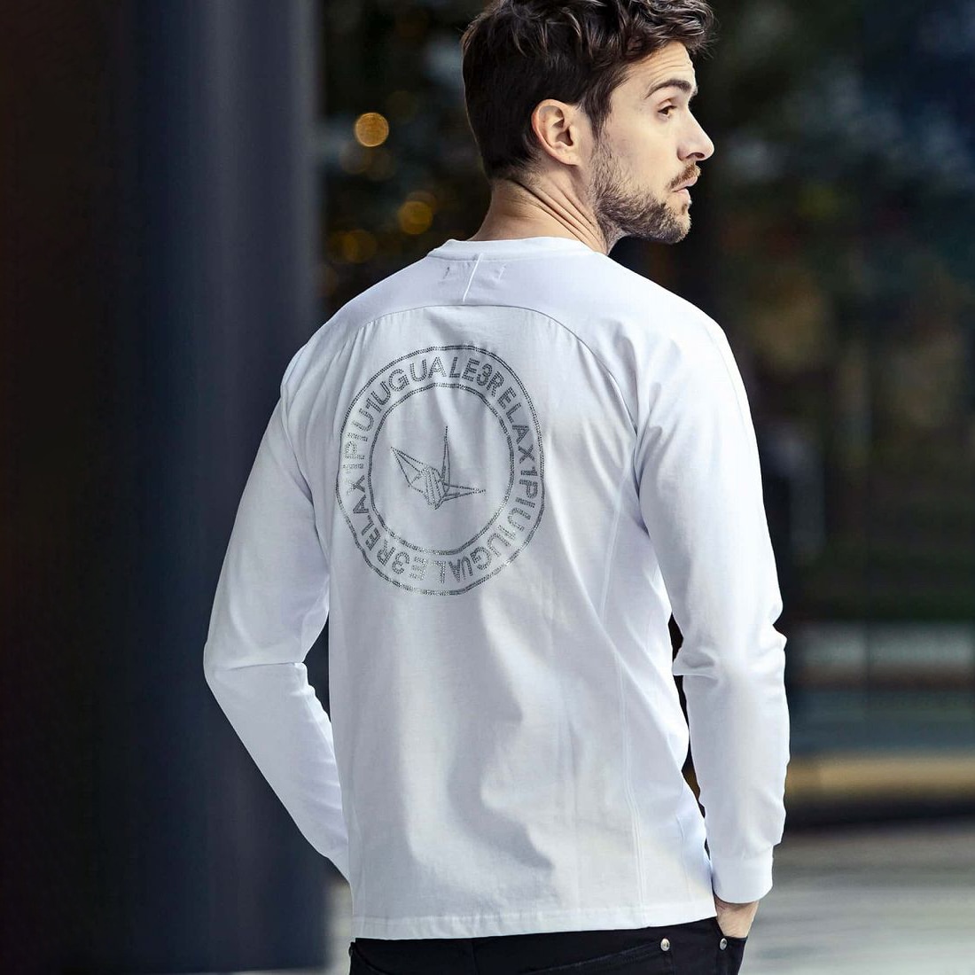 フロントはあえて折り鶴の刺繍のみでクリーンな印象に。