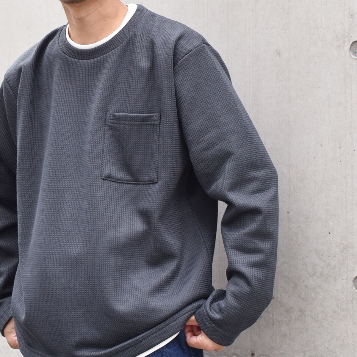 SHIPS anyワッフル フーディ プルオーバー ネイビー