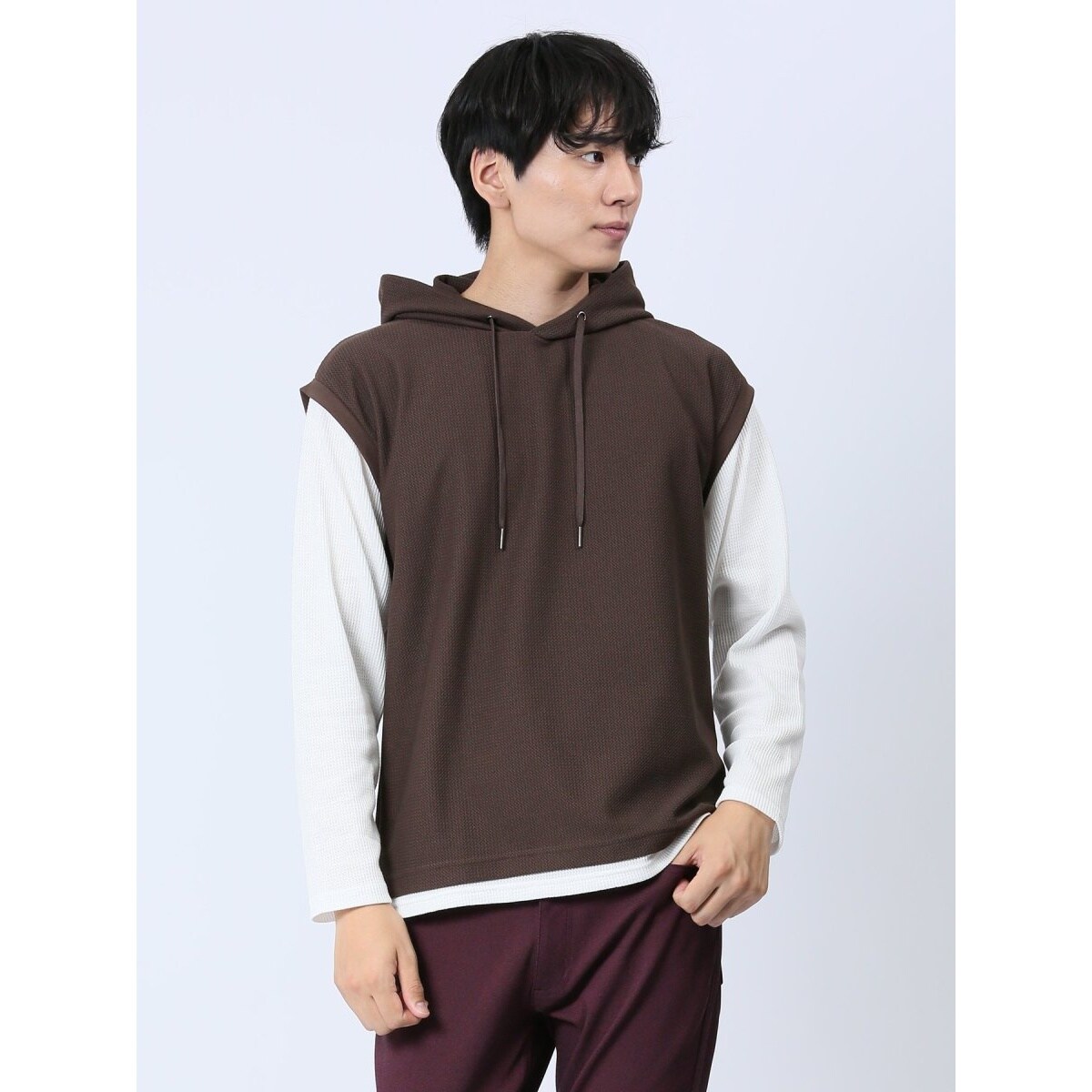 タカキュー さまになる フェイクレイヤード 半袖プルパーカー