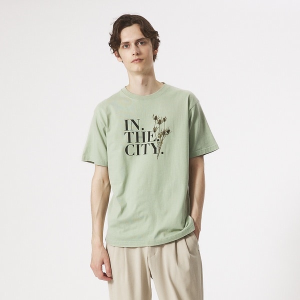 ABAHOUSEのタグラインである「IN THE CITY」のレタリングをワンポイントとしてあしらったTシャツ。レタリングのサイドにドラフラワーのプリントがアクセント。 少しゆったり目なシルエットです。