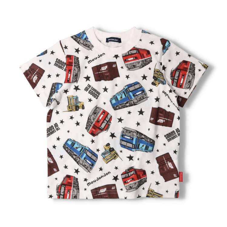 男の子が大好きな電車!人気の貨物列車シリーズ。貨物列車をけん引している機関車のレッドサンダー、ブルーサンダーとコンテナ、フォークリフトの総柄プリント入りの半袖Tシャツ。安心の日本製でギフトやプレゼントにもオススメ!(ベビーサイズのみ肩ボタン仕様になります。)【アイテム】半袖 トップス カジュアル お洒落 オシャレ かっこいい かわいい 可愛い 普段着 デイリーウェア お出かけ着 お外遊び着 子ども こども 男児 男の子 ボーイズ キッズ ベビーサイズ トドラーサイズ 幼稚園 保育園 小学校 通園 通学 小学生 2023年夏物新作 丸高衣料 鉄道 子鉄 車両 電車 電鉄 トレイン ブラック 黒色 ホワイト 白色 ムージョンジョン コットン100% 綿100% made in Japan メイドインジャパン 国内生産