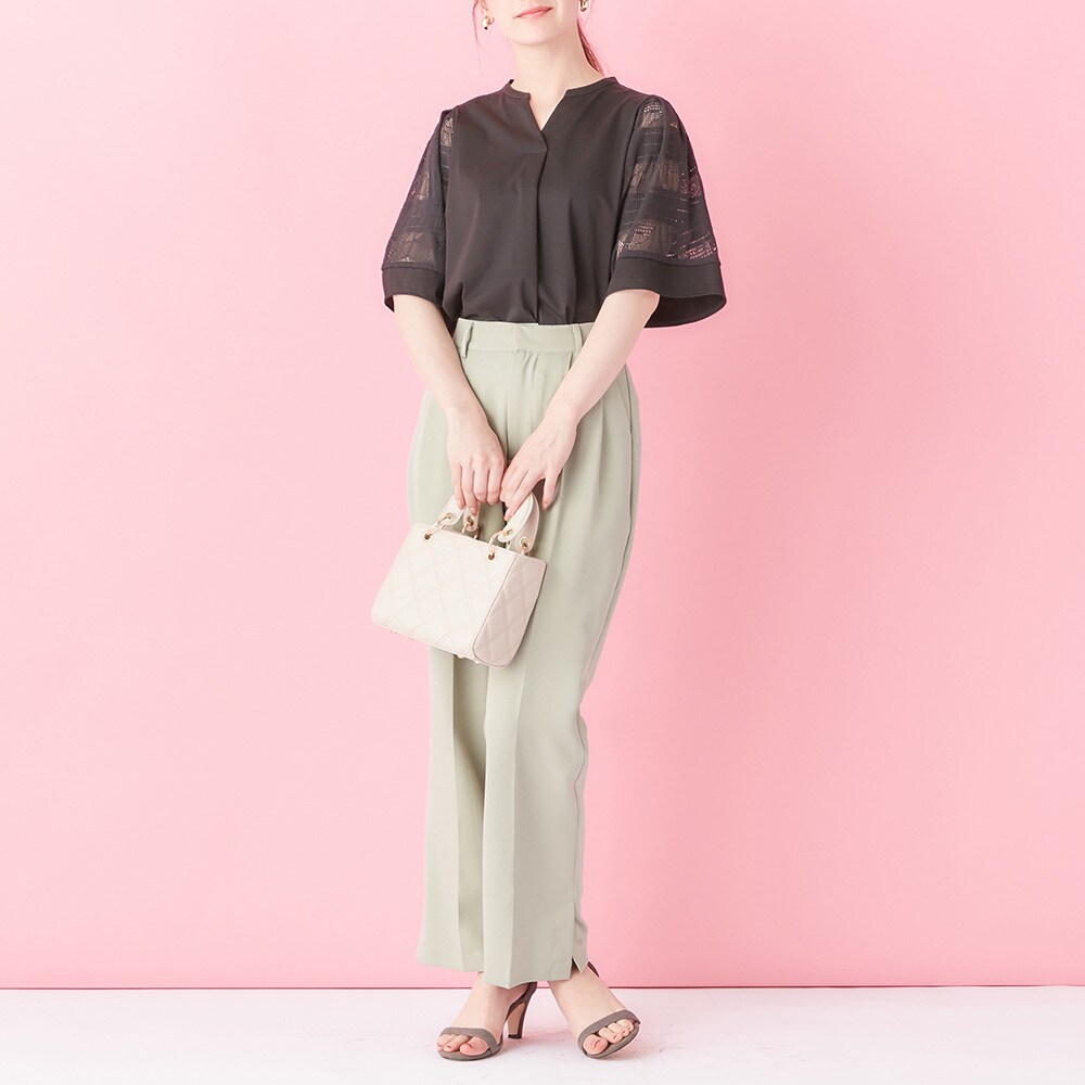 程良い透け感のパネル柄レースの袖デザインで、こなれた印象に。