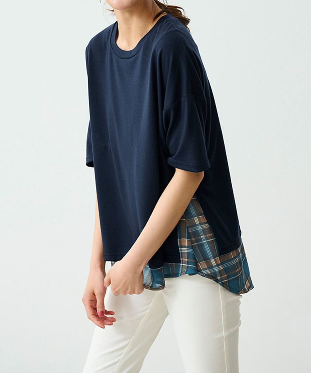 美品✨DIAPASON【M-L】異素材切替 ドッキング/チュニックカットソー