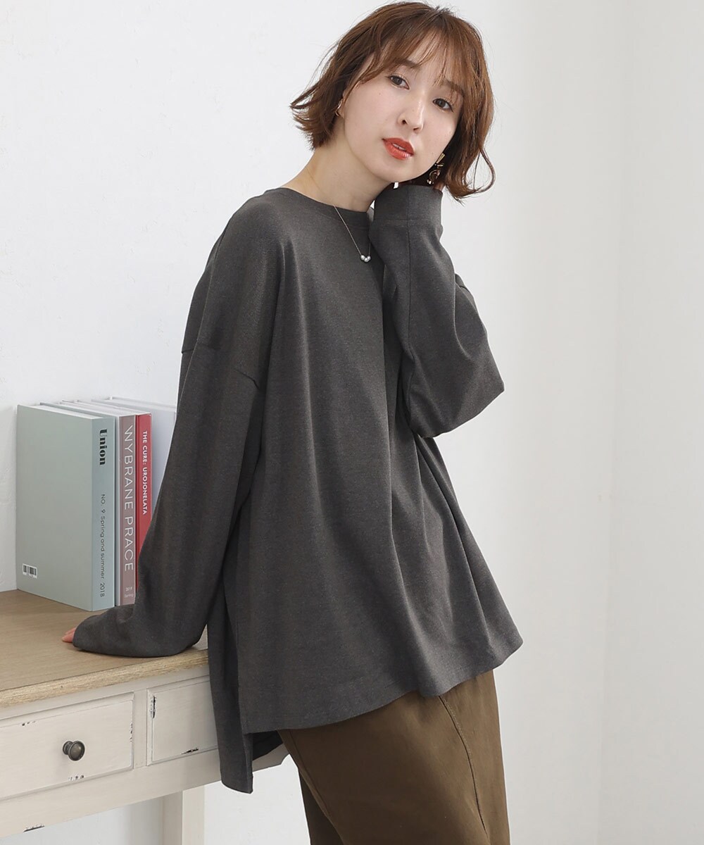 シンプルなデザインで着まわし抜群のロングTシャツです。