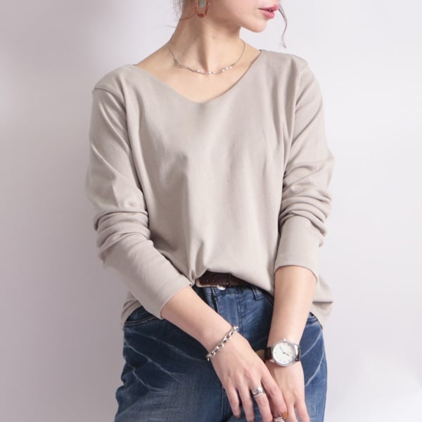 J163☆5L-6L☆綿100%*Vネック ロンT✳︎カットソー✳︎前後差丈