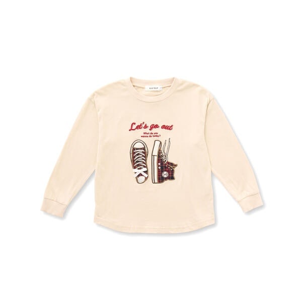 フロント部分にほどこしたワッペンがパッと目を引く長袖Tシャツ。