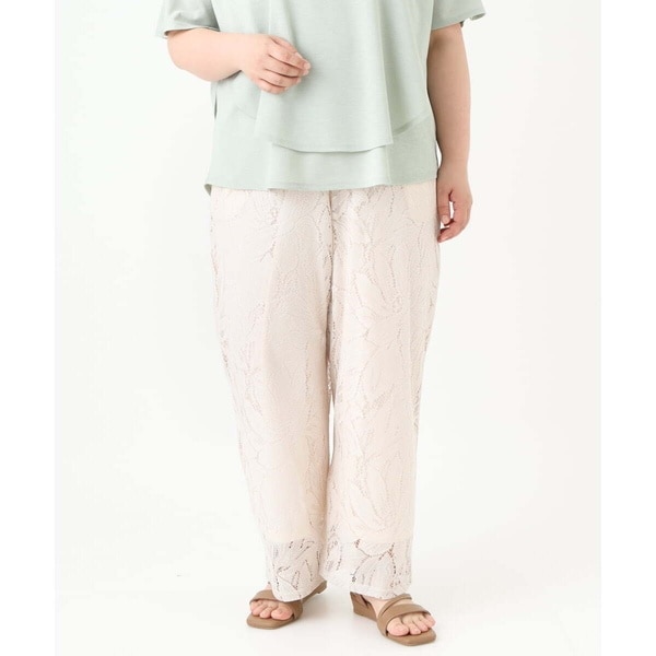 ワイドパンツ レース ベージュ LL ストレッチ 大きいサイズ