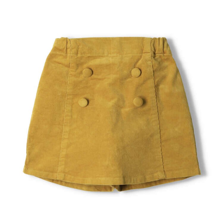 秋冬らしいコーデュロイ素材。前から見るとスカートですが、ショートパンツになっているデザインが着やすい!【アイテム】ナチュラル シンプル ベーシック フェミニン ガーリー 無地 カジュアル お洒落 オシャレ かわいい 大人可愛い 普段着 デイリーウェア お出かけ着 お外着 外遊び着 ロング丈 長丈 長ズボン フル丈 ボトムス 子ども こども 女児 女の子 ガールズ キッズ ベビーサイズ トドラーサイズ 幼稚園 保育園 小学校 通園 通学 小学生 2023年秋冬物新作 丸高衣料 ショーパン マスタード イエロー 黄色 茶色 ブラウン チャ ムージョンジョン